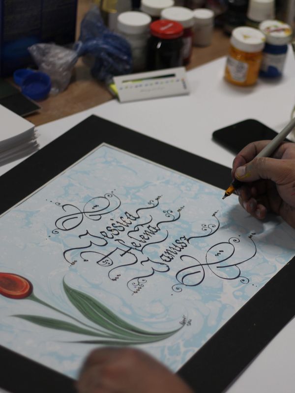 Bei EbruKunst bieten wir nicht nur Workshops zur traditionellen Ebru-Kunst an, sondern auch immersive Kalligraphie-Workshops. Egal, ob Sie Anfänger oder Fortgeschrittener sind – diese Workshops bieten praktische Erfahrungen, um die fließenden Linien und die kunstvollen Designs der Kalligraphie zu meistern. Sie können verschiedene Schriftarten und zeitgenössische Kalligraphie-Stile erlernen und sich durch diese zeitlose Kunstform ausdrücken.